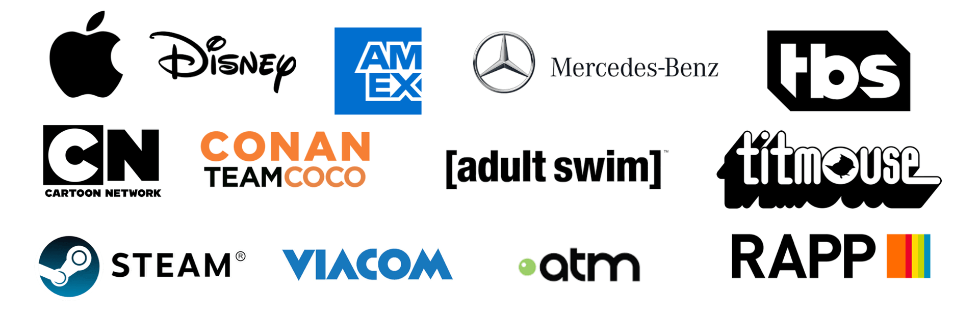 Apple, Disney, AMEX, Mercedes, TBS and many more.